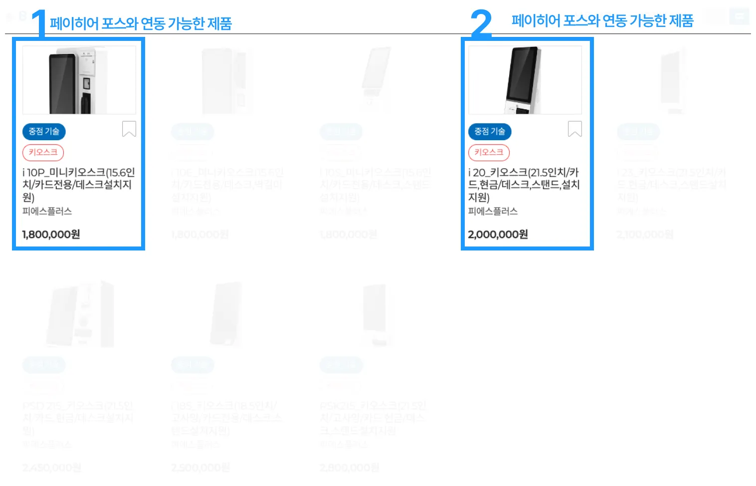 키오스크 선택 → [제품 선택] 버튼을 눌러주세요.