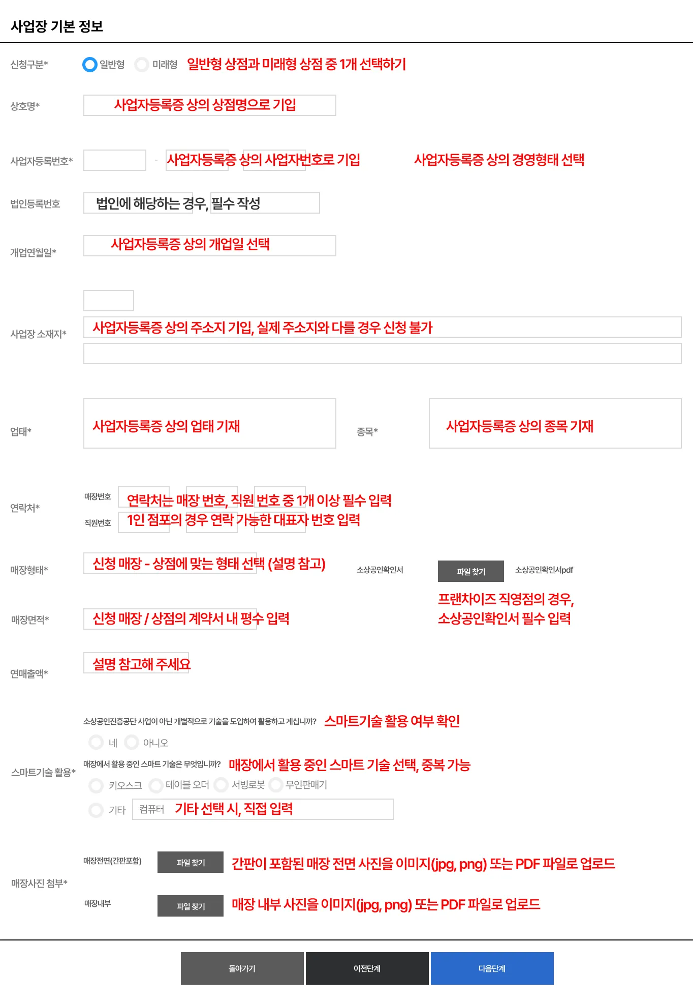 상점 정보 입력 | 키오스크 선택 | 신청 완료 |